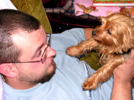 bratr Mirek s Aleniným jorkšírem Jesikou